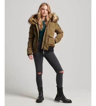 Superdry para mujer. W5011576A Cazadora bómber acolchada con capucha Everest verde (XL), Casual, Poliéster