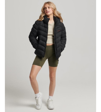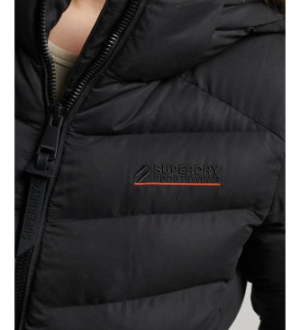 Superdry para mujer. W5011594A Chaqueta acolchada de microfibra con capucha (M), Negro, Casual, Poliéster Reciclado, Sostenible