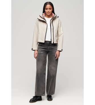 Superdry para mujer. W5011655A Chaqueta cortavientos bordado SD beige (M), Casual, Poliéster, Manga larga