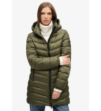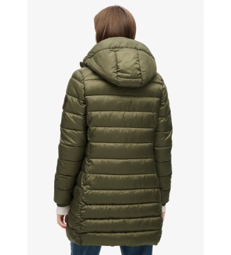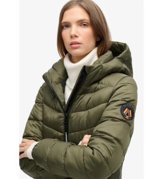 Superdry para mujer. W5011719A Abrigo acolchado medio con capucha Fuji verde (M), Casual, Poliéster