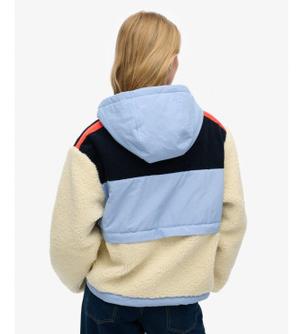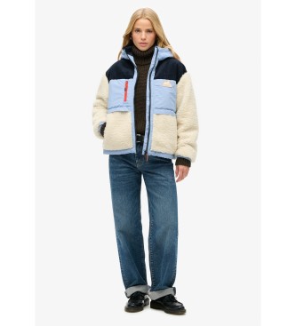 Superdry para mujer. W5011772A Chaqueta Borrego azul, blanco roto (S), Casual, Poliéster