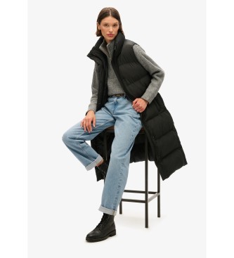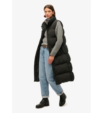 Superdry para mujer. W5011803A Chaleco acolchado de línea larga negro (S), Casual, Poliéster Reciclado, Sostenible