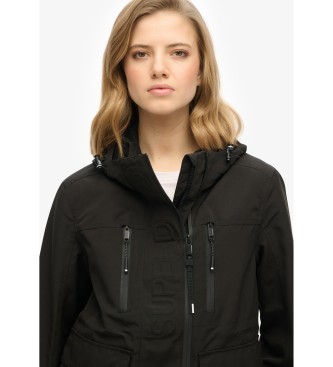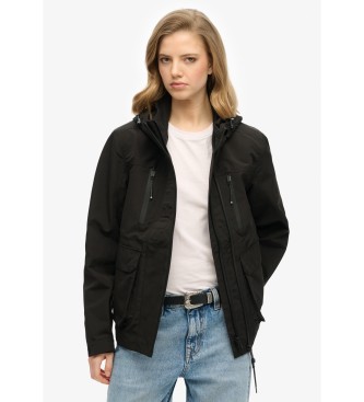 Superdry para mujer. W5011851A Chaqueta cortavientos con capucha Ultimate Tech negro (L), Casual, Poliéster Reciclado, Sostenible