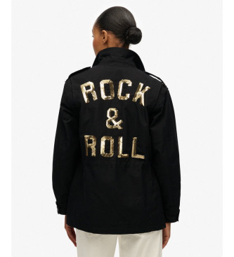 Superdry para mujer. W5011938A Chaqueta Embellished Field negro (M), Casual, Algodón