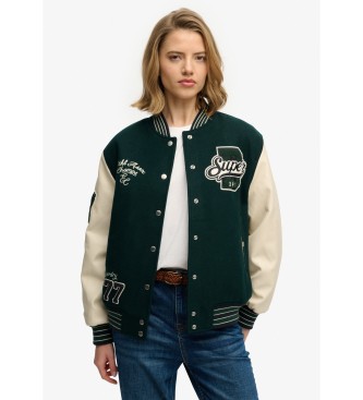 Superdry para mujer. W5012061A Cazadora Patched Varsity Bomber verde (S), Casual, Lana