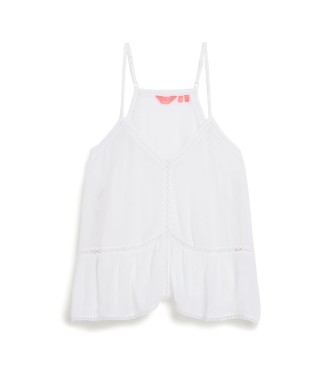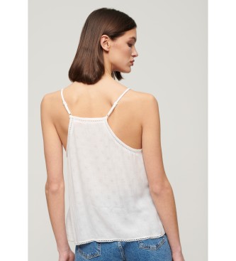 Superdry para mujer. W6011647A Camiseta con ribete escalonado blanco (S), Casual, Viscosa, Sin mangas / Tirantes