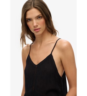 Superdry para mujer. W6011647A Top de tirantes con ribete de escalera negro (XL), Casual, Sin mangas / Tirantes