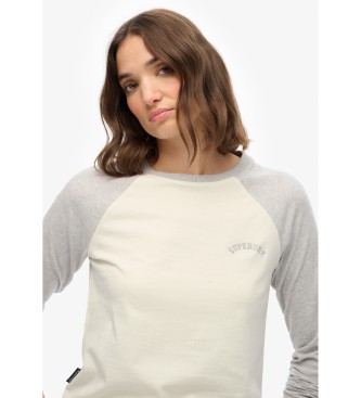 Superdry para mujer. W6011805A Camiseta Baseball gris (M), Casual, Algodón, Manga larga