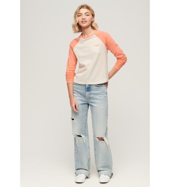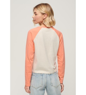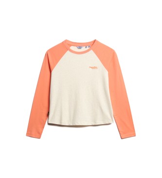 Superdry para mujer. W6011805A Camiseta de béisbol con logotipo Essential beige, naranja (S), Casual, Manga larga, Algodón Orgánico, Sosteni