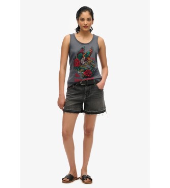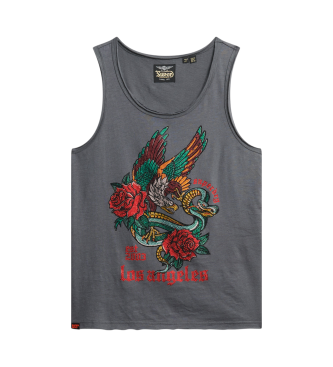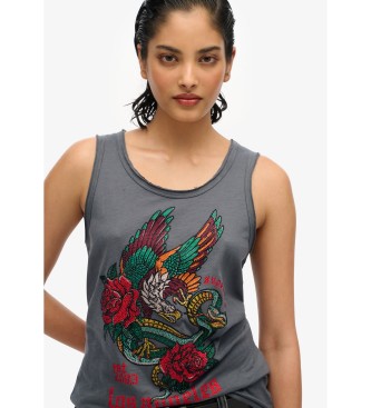 Superdry para mujer. W6012044A Top sin mangas con amplio escote redondo y tatuaje Neo Trad gris (XS), Casual, Algodón, Sin mangas / Tirantes