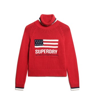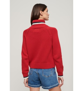 Superdry para mujer. W6110538A Jersey de punto con cuello vuelto Americana rojo (S), Casual, Algodón, Manga larga
