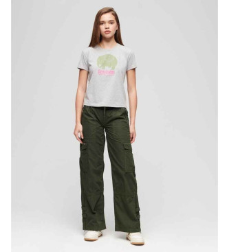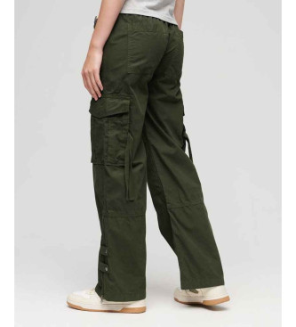 Superdry para mujer. W7010914A Pantalón cargo de pernera ancha y talle bajo verde
