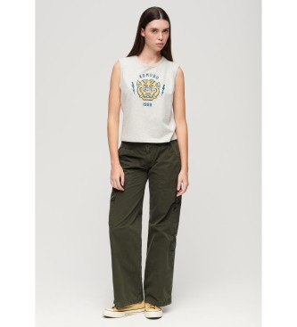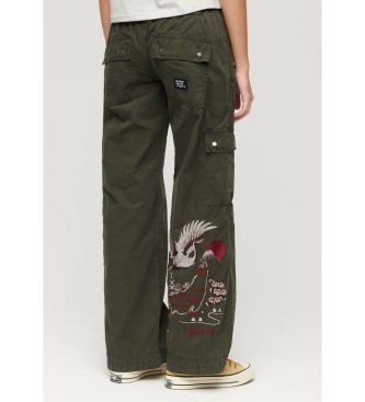 Superdry para mujer. W7011075A Pantalón cargo de talle bajo con bordado verde
