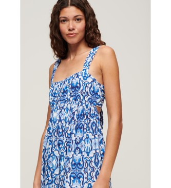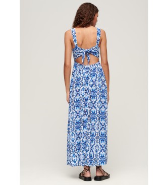 Superdry para mujer. W8011623A Vestido con tiras de anudar en la espalda azul (XL), Casual, Viscosa, Sin mangas / Tirantes