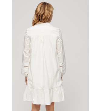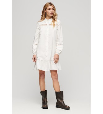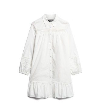 Superdry para mujer. W8011625A Vestido camisero con mezcla de encaje blanco (XS), Casual, Algodón, Manga larga