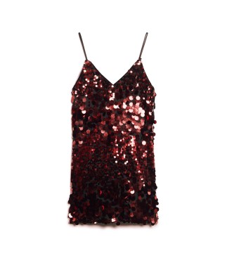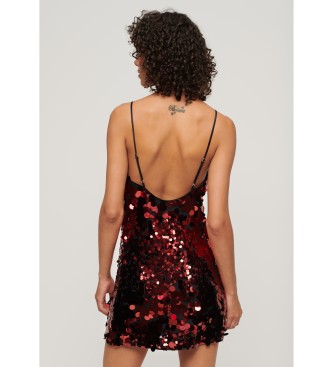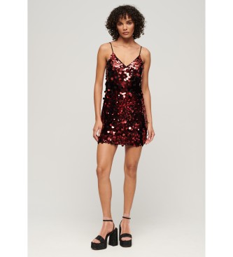 Superdry para mujer. W8011718A Minivestido con lentejuelas Disco rojo (XS), Casual, Fiesta, Poliéster, Sin mangas / Tirantes