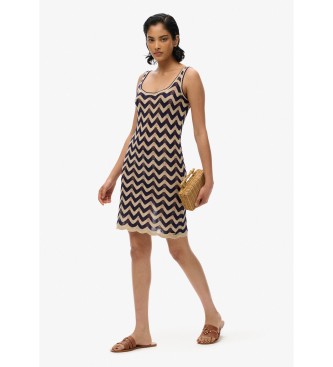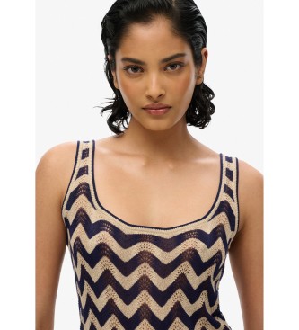 Superdry para mujer. W8011846A Minivestido de punto en zigzag marino (S), Casual, Viscosa, Sin mangas / Tirantes