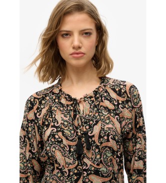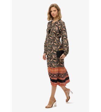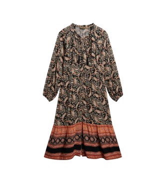 Superdry para mujer. W8011887A Vestido midi estampado negro (S), Casual, Manga larga, Algodón Orgánico, Sostenible