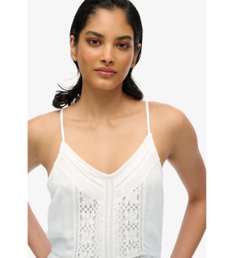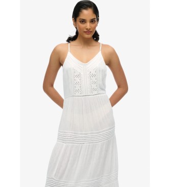 Superdry para mujer. W8011908A Vestido largo de tirantes Ibiza blanco (XS), Casual, Viscosa, Sin mangas / Tirantes