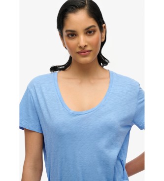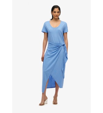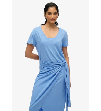Superdry para mujer. W8011944A Vestido midi cruzado flameado azul (L), Casual, Algodón, Manga corta