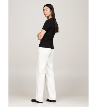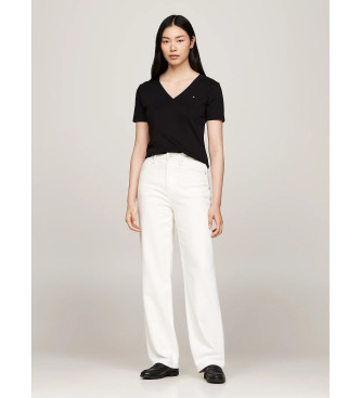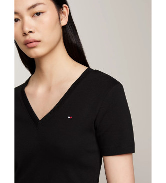 Tommy Hilfiger para mujer. WW0WW40584 Camiseta slim con cuello de pico negro (XS), Casual, Algodón, Manga corta