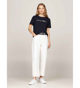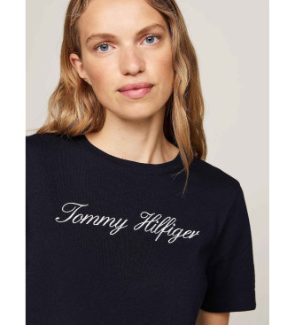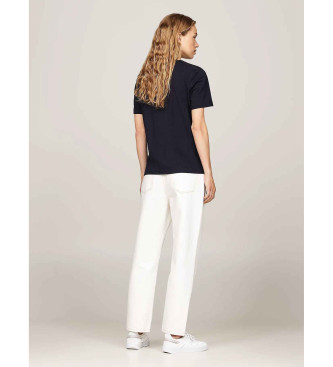Tommy Hilfiger para mujer. WW0WW43459 Camiseta con logo marino (M), Casual, Manga corta, Algodón Orgánico, Sostenible