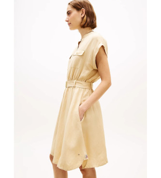 Tommy Hilfiger para mujer. WW0WW49659 Vestido camisero corto con cinturón beige (L), Casual, Lino