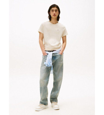 Tommy Jeans para hombre. DM0DM04411 Camiseta con corte slim beige (L), Casual, Algodón, Manga corta