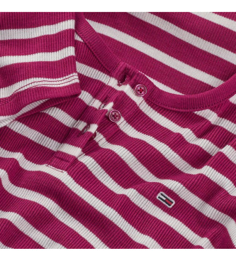 Tommy Jeans para mujer. DW0DW19502 Camiseta de manga corta slim button burdeos (M), Casual, Algodón Orgánico, Sostenible