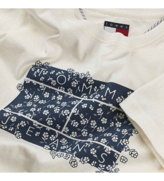 Tommy Jeans para mujer. DW0DW20897 Camiseta Floral blanco (M), Casual, Manga corta, Algodón Orgánico, Sostenible