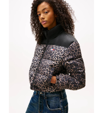 Tommy Jeans para mujer. DW0DW21967 Chaqueta Puffer (XS), Beige, Casual, Animal print, Poliéster
