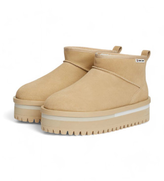Tommy Jeans para mujer. EN0EN02599 Botines de piel con forro cálido beige