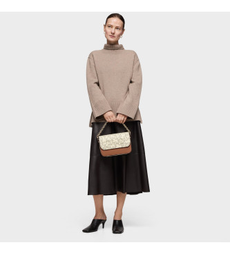 Bolso bandolera mediano Chain Kaos Icon de lona con detalles de poliuretano en color camel y beige. Cierre de solapa con botón magnético. Tres bolsillos interiores abiertos. Asa bandolera ajustable. M...