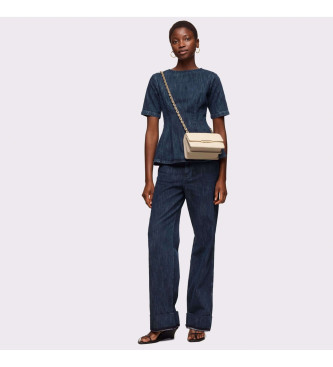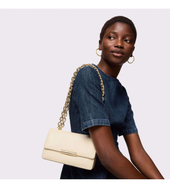 Bolso bandolera pequeño Audree Leather de piel ovina con certificación LWG en color beige. Cierre de solapa con botón magnético. Bolsillo interior abierto. Dos compartimentos abiertos en el interior. ...