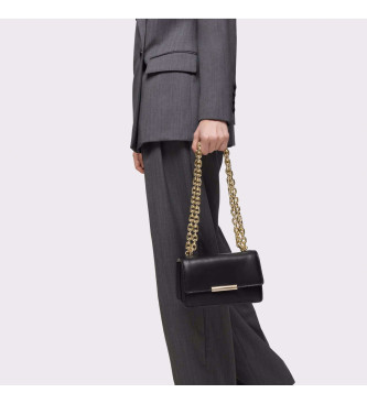 Bolso bandolera pequeño Audree Leather de piel ovina con certificación LWG en color negro. Cierre de solapa con botón magnético. Bolsillo interior abierto. Dos compartimentos abiertos en el interior. ...