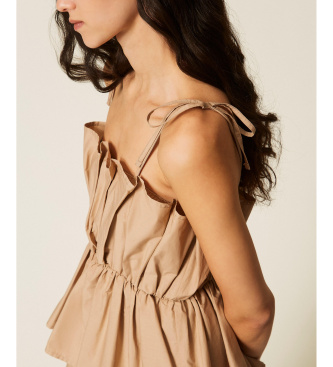 Twinset para mujer. 261TF2030 Vestido de popelina con volante beige