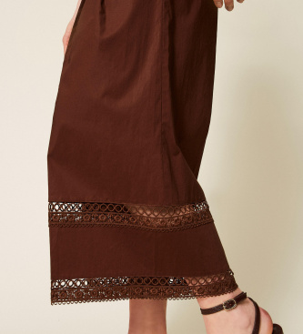 Twinset para mujer. 261TT2252 Pantalón ancho de popelina con bordado marrón