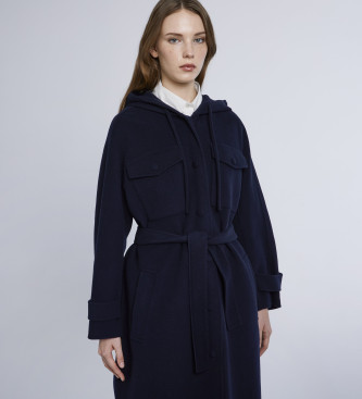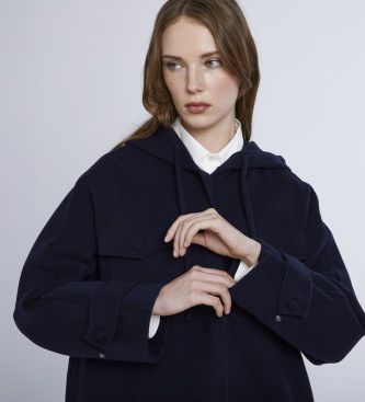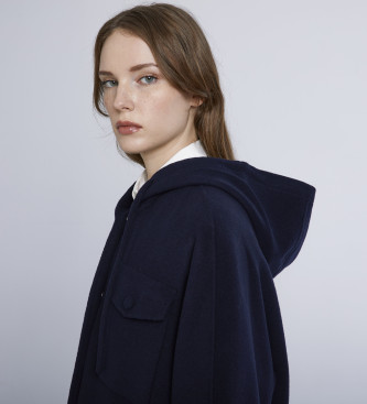 Abrigo largo con capucha y cordón ajustable confeccionado con paño de lana pura. Su diseño oversize destaca por los bolsillos de parche con solapa y botón a presión en el pecho, los bolsillos con ribe...