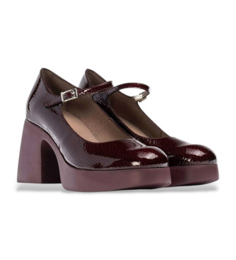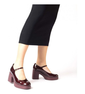 Merceditas con plataforma LADY 40 confeccionadas en piel charol burdeos. Este modelo tiene un diseño tradicional con un aire fresco y moderno gracias a su tira con cierre mediante hebilla y su suela c...