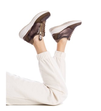 Zapatilla de mujer, de la marca Xti. Fabricada en un material que imita la piel. Detalles metalizados. Cierre cremallera lateral y cordones para un mayor ajuste. Suela de goma gruesa y antideslizante....