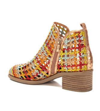 Botines de mujer, de la marca Xti. Fabricadas en material textil con efecto metalizado. Diseño en trenzado con distintos colores, para darle un toque colorido a tus looks de verano. Tacón forrado efec...